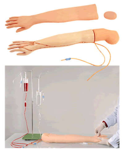 主要功能特點(diǎn): ■ 手臂上分布的八條主要靜脈血管系統(tǒng),可進(jìn)行靜脈的注射、輸液(血)、抽血等穿刺訓(xùn)練功能。 ■ 可進(jìn)行三角肌部位的肌肉注射。 ■ 上肢可旋轉(zhuǎn)180度,可模仿真人手臂能轉(zhuǎn)動(dòng),便于穿刺練習(xí)。 ■ 進(jìn)針有明顯的落空感,正確穿刺有回血產(chǎn)生。靜脈輸液手臂模型