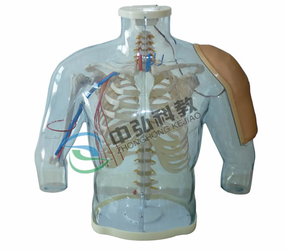 1、皮膚手感質(zhì)感真實,進針痕跡不明顯。2、右側上臂透明,可以觀察內(nèi)部的神經(jīng)和血管結構,方便定位。3、正確的注射點,避免誤刺神經(jīng)和血管,使操作訓練真實。4、肩峰和其它骨骼等體表標志明顯,可通過觸摸判斷正確注射點。5、如果注射位置錯誤或者過深,紅色指示燈光會顯示。6、刺到神經(jīng)時,神經(jīng)指示燈會閃爍,同時發(fā)出電子報警聲提示。7、注射正確,綠色燈會顯示。8、可在模型肩部和肘部兩處進行皮下、肌肉注射練習。9、可注入液體,由排液管中排出。