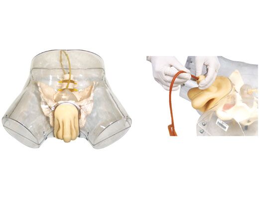 1、外部生殖器官造型逼真、手感真實。2、可通過透明的恥骨部觀察骨盆和膀胱的相對位置,骨盆位置固定,可觀察膀胱的位置和插入導管的角度。3、插入導管的阻力和壓力與真實人體相似。4、練習插入導管的各個步驟,可以從外部觀察到氣囊導管膨脹和膨脹后導管的位置。5、可使用臨床標準雙腔管或三腔管,生殖器可以抬起與腹部形成60°角,體現(xiàn)三個彎曲三個狹窄。6、導管正確插入后,“尿液”才會流出。