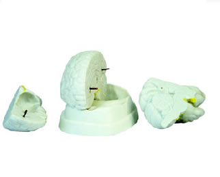 本模型展示了腦的整體概念,以及大腦、小腦和腦干之間的相互關系。自然大,分成3件,置于塑料座上。尺寸: 18.5x14x13.5CM。
