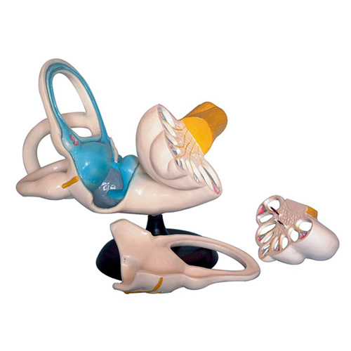 內(nèi)耳解剖放大模型展示耳蝸、前庭及三個半規(guī)管等結構。尺寸:250×320×180