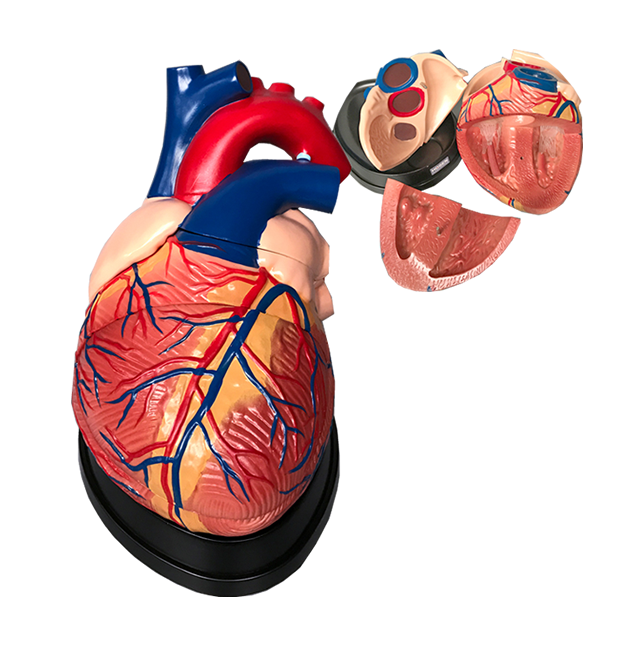 本模型適用于普通中學、中等專業(yè)學校講解生理解剖課時作直觀教具用,主要使學生了解心臟外部形態(tài)和內(nèi)部結(jié)構(gòu),以及與心臟有關(guān)的大血管,進一步了解體循環(huán)和肺循環(huán)的途徑。