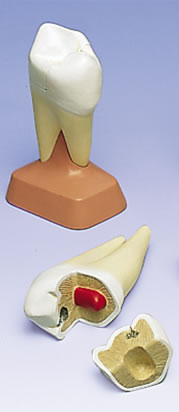 牙冠一半可拆卸以顯示牙髓和齲齒的初始。置于基架上。