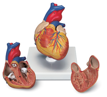 這款心臟模型詳細地展示心臟各解剖結(jié)構(gòu),心室、心房、靜脈和主動脈。前心壁可分解以顯示心腔和內(nèi)部瓣膜。略小于實物,但精細詳盡。置于基架上。