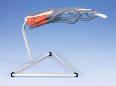這款精細(xì)的手指模型為實物大小,用來研究食指的骨、肌肉和腱。置于基架上。