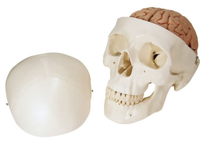 •高質量的原型•用堅固不碎的硬塑料手工制成•高度精確地展示了小腦溝、孔、突、骨縫等•可分拆成顱蓋、顱底和下頜骨