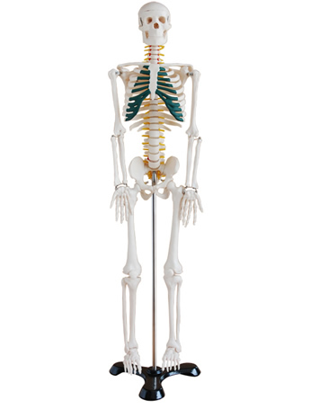 這款模型顯示了脊椎、神經(jīng)根、脊椎動(dòng)脈、分椎間盤(pán)、用綠色加深的胸部軟骨、可分成3件的頭顱和手足。尺寸:85CM。