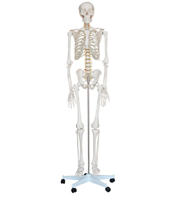 這款經(jīng)濟(jì)型的、真人大小的、關(guān)節(jié)相連的塑料模型是基礎(chǔ)解剖教學(xué)的理想模型,物美價(jià)廉。手臂和腿部可拆下供研究。顯示神經(jīng)分支、脊椎動(dòng)脈和腰椎間盤等。頭顱含可活動(dòng)的下巴、可移動(dòng)的頭顱蓋、骨縫線和三顆可取下的下牙。用PVC制成,可水洗,不破碎。尺寸:180CM