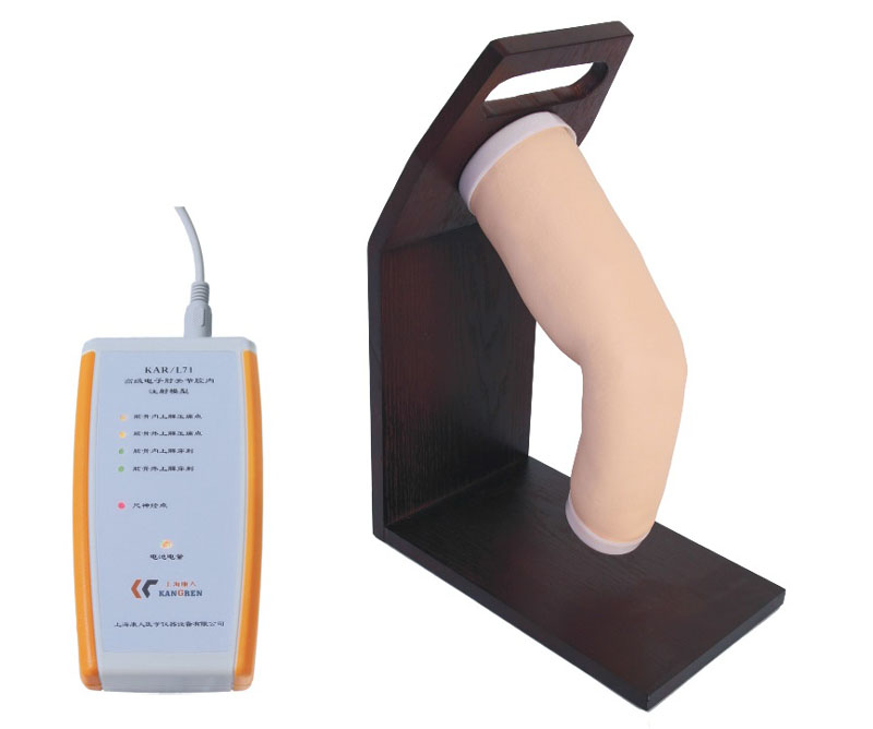 功能特點(diǎn): ■ 解剖結(jié)構(gòu)標(biāo)準(zhǔn),具有肱骨內(nèi)、外上髁、尺神經(jīng)、尺骨、橈骨、肘關(guān)節(jié)腔等真實(shí)的結(jié)構(gòu)。 ■ 高爾夫肘和網(wǎng)球肘的治療體位擺放。 ■ 右臂肘關(guān)節(jié)彎曲,可沿固定軸旋轉(zhuǎn)。 ■ 當(dāng)找到正確的壓痛點(diǎn),黃燈顯示,當(dāng)每個(gè)穿刺部位正確時(shí),在控制盒上會(huì)有相應(yīng)的綠燈顯示,當(dāng)針頭進(jìn)入伴于肱骨內(nèi)上髁后方的尺神經(jīng)時(shí),以紅燈顯示錯(cuò)誤,皮膚表面可用肥皂水清潔。 ■ 用于肘關(guān)節(jié)損傷和炎癥的軟組織關(guān)節(jié)腔內(nèi)注射治療訓(xùn)練。