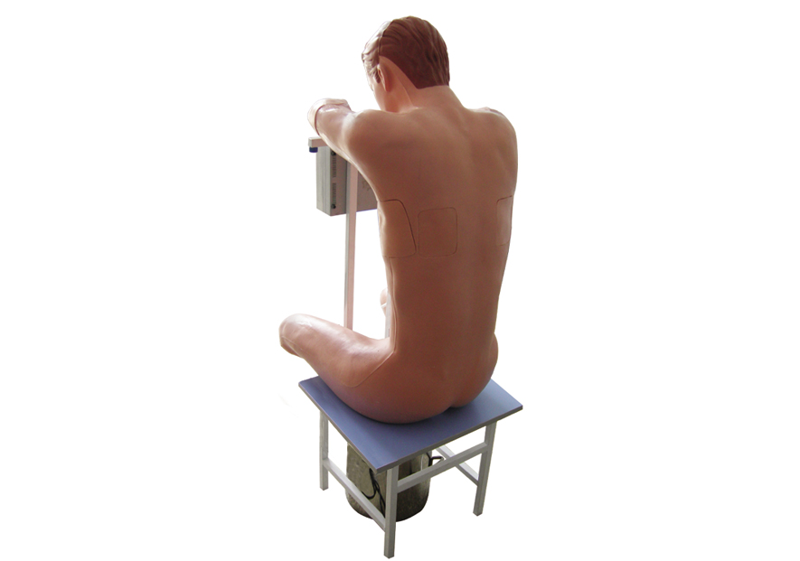 ZH-XCDZ電腦胸腔穿刺模擬人又稱(chēng)為胸腔穿刺模型,用于胸腔穿刺術(shù)和氣、液胸閉式引流操作模擬教學(xué)訓(xùn)練和技能考核。 一、模型特點(diǎn): 1、技術(shù)先進(jìn):向胸膜中注液及注氣由手工操作改進(jìn)為電動(dòng),只要按控制器面板上的按鈕即可自動(dòng)向胸腔穿刺模型的胸膜腔內(nèi)注入氣體或液體,自動(dòng)形成模擬氣胸或胸腔積液。 2、生動(dòng)形象:采用優(yōu)質(zhì)硅膠模具制成,質(zhì)地柔軟,手感逼真,模擬人五官彩色化妝,生動(dòng)形象,尤如真人。 3、語(yǔ)音提示:穿刺部位錯(cuò)誤,會(huì)有自動(dòng)語(yǔ)音提示,如沿著肋骨下緣穿刺時(shí),控制器會(huì)發(fā)出“穿刺部位錯(cuò)誤,損傷了神經(jīng)血管”的語(yǔ)音警告。 4、效果逼真:穿刺正確時(shí),有較明顯的落空感。 5、自動(dòng)密封:穿刺部位可自動(dòng)密封,穿刺上百次無(wú)明顯泄露,局部皮膚可更換可修補(bǔ)。 二、使用方法: 1、安放仿真標(biāo)準(zhǔn)化病人反坐于靠背椅上,用螺絲妥善固定。 2、將控制器機(jī)箱掛在椅背上,電源插頭插入電源插座。 3、將微型潛水泵放入小水桶中,接滿(mǎn)自來(lái)水,亦可根據(jù)教學(xué)需要加入少許黃色染料使液體略呈淡黃色制的模擬胸水。 4、胸腔穿刺抽液: A:打開(kāi)與水泵相連的注液閥門(mén)在實(shí)習(xí)期間持續(xù)打開(kāi)。 B:按下控制器面板上的“胸腔注液”和“語(yǔ)音提示”按鈕,相應(yīng)的指示燈亮,水泵即向模擬胸腔內(nèi)注入“胸水”,溢流管中有液體流出時(shí),表明已注滿(mǎn)“胸腔”開(kāi)成了“胸腔積液”。 C:叩診兩側(cè)胸腔可獲實(shí)音處,穿刺部位可在肩胛下角下方第7-8肋間隙腋中線第6-7肋間或腋前線5-6肋間,按操作常規(guī)操作,穿刺沿下位肋骨的上緣緩慢刺入胸腔,如操作正確可出現(xiàn)落空感,并能夠抽出胸腔積液,如穿刺部位錯(cuò)誤,仿真病人將發(fā)出“穿刺部位錯(cuò)誤損傷了神經(jīng)血管”的語(yǔ)音提示,提示操作者重新穿刺,此項(xiàng)實(shí)習(xí)完畢,關(guān)閉胸腔穿刺模型電源,打開(kāi)閥門(mén)放出液體。 5、氣胸穿刺術(shù):備好水封瓶并與穿刺針座的尾部接好。按下“胸腔注氣”按鈕,該指示燈亮,微型水泵即自動(dòng)向模擬胸腔中注氣形成“氣胸”,此時(shí)不要關(guān)閉電源,按胸常規(guī)操作,穿刺部位可經(jīng)兩側(cè)鎖骨中線第二肋間隙沿下位肋骨上緣進(jìn)針,穿刺成功時(shí)可見(jiàn)水封瓶中有氣泡連續(xù)冒出,此項(xiàng)實(shí)習(xí)完畢時(shí)閉關(guān)電源。
