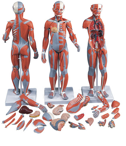 ZH-02905肌肉解剖模型顯示85cm高兩性全身肌肉的組成、形態(tài)和結(jié)構(gòu),胸腹壁可打開顯示內(nèi)臟器官的形態(tài)和位置,各內(nèi)臟器官可拆下,男女兩性生殖器官可互換;可分解成33部件。