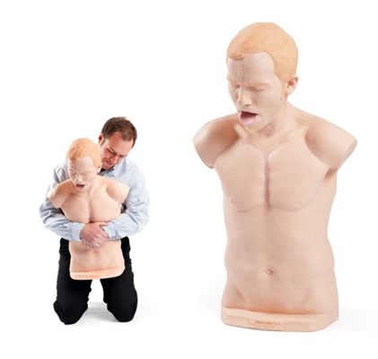 該模型為半身男性模型,具有解剖學(xué)特征,主要模擬異物氣道梗塞,訓(xùn)練腹部按壓手法,通常稱為Heimlich手法。