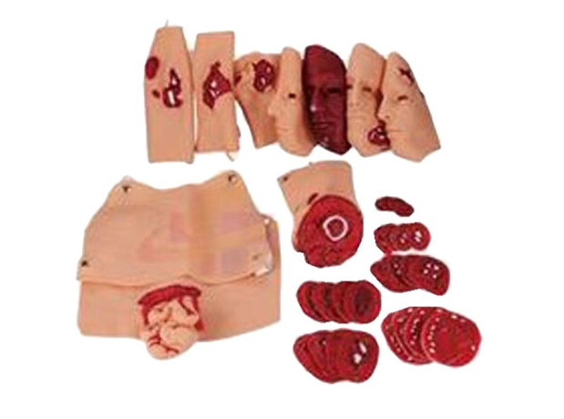 產(chǎn)品介紹: 功能特點: ■ 創(chuàng)傷模塊由34部件組成,采用高分子材料制成,仿真度高。 ■ 可靈活的固定在“模擬人傷者”身上。 ■ 可進行傷口識別、清洗消毒、包扎、固定、搬運等練習急救現(xiàn)場常用技術(shù)。 模塊組成: ■ 前額撕裂傷(流血傷口):1個 ■ 下顎傷(流血傷口):1個 ■ 胸部吸吮性創(chuàng)傷(流血傷口):1個 ■ 腹部外傷,伴小腸突出(流血傷口):1個 ■ 手掌的槍傷(流血傷口):1個 ■ 復合型骨折:肱骨、前臂開放性骨折(流血傷口):1個 ■ 復合型骨折:脛骨、小腿開放性骨折(流血傷口):1個 ■ 右腿的截肢(流血傷口):1個 ■ 休克臉(流血傷口):1個 ■ Ⅰ、Ⅱ、Ⅲ度臉部燒傷:1個 ■ 不同程度撕裂傷、開放性骨折模塊:24個 |